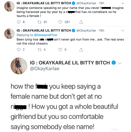 “N***a you dropped your head b**** like the b**** you is. You h*e a** n***a. All this internet clout… You cornball a** n***a. Some of y’all conducting and condoning straight h*ery. N***a you a h*e!”