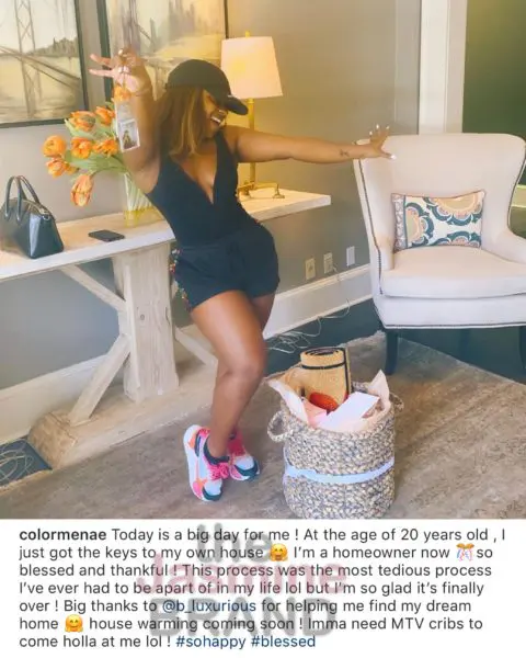 “Today is a big day for me! At the age of 20 years old, I just got the keys to my own house? I’m a homeowner now? So blessed and thankful!”