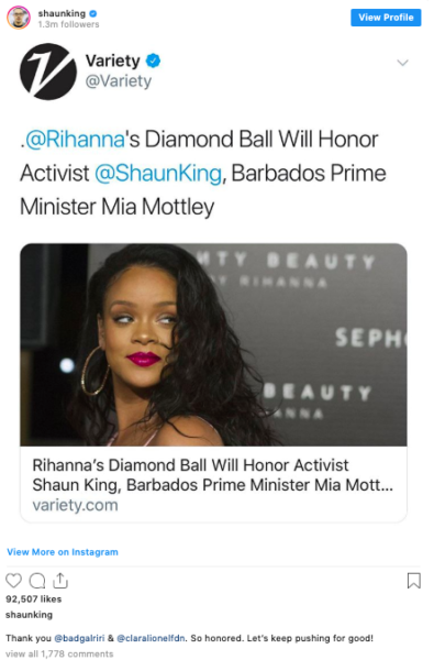 Rihanna To Honor Shaun King At Diamond Ball, Some Fans Are Livid