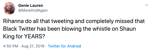 #ShaunKing is one of the biggest USERS of the black community of ALL time. OH AND HE’S A WHITE MAN PRETENDING TO BE BLACK TO SCAM $$$ and FAME OFF POC. Will anyone say it? I will! He’s a RACIST.