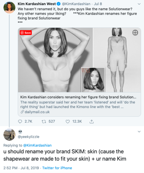 Fan Reveals They Gave Kim Kardashian The New Name For Her Shapewear Line, SKIMS