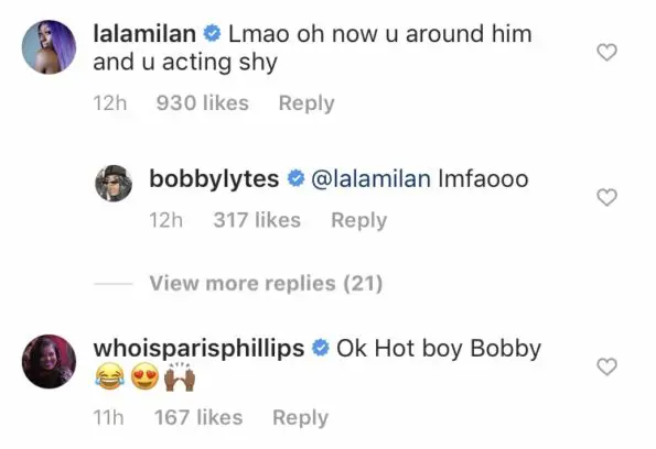 Meanwhile, a few of Bobby’s friends that you may find familiar trolled him for his scaled-back demeanor in the presence of his crush. Check out a few of their comments below.