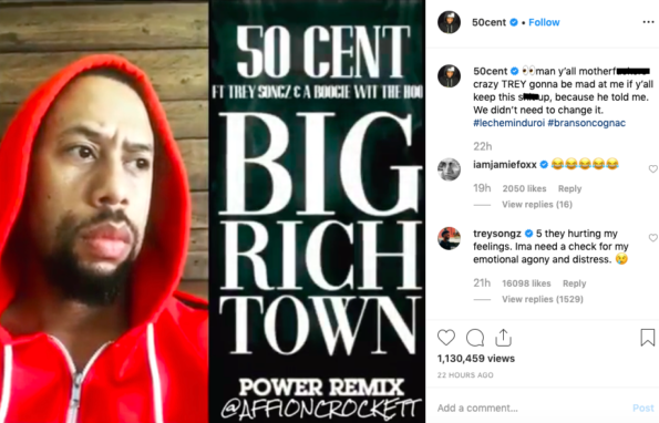 “yo @treysongz looked at me like, ?what you want to do to the song. I’m like let’s just update it, it’s 6 years old. He was like?ok if you say so 50.”