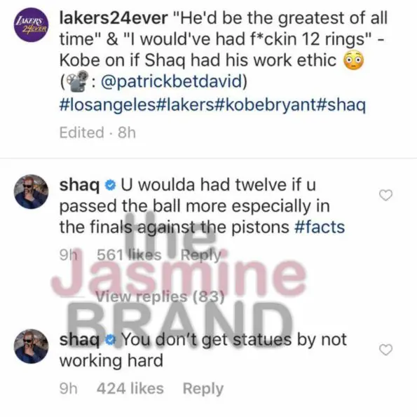 “U woulda had twelve if u passed the ball more especially in the finals against the pistons #facts,” O’Neal stated. “You don’t get statues by not working hard.”