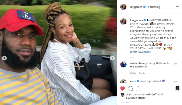 “@kingjames HAPPY BEAUTIFUL-DAY MY QUEEN !!! Simply THANK YOU! Words can’t express my appreciation for you and it’s not for everyone else anyways cause they wouldn’t understand unless they been around this journey of ours. LIVE.LAUGH.LOVE. ENJOY YOUR DAY to the FULLEST! @mrs_savannahrj”