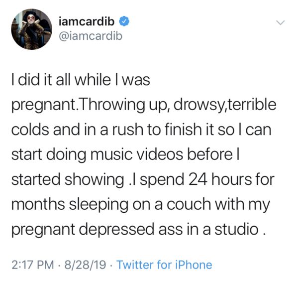 Cardi B On Recording Grammy Winning Album: I Spent 24 Hours For Months Sleeping On A Couch W/ My Pregnant, Depressed A** In The Studio!