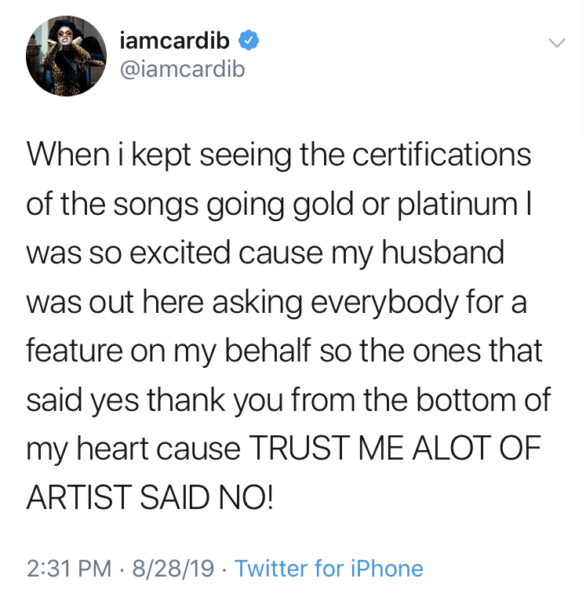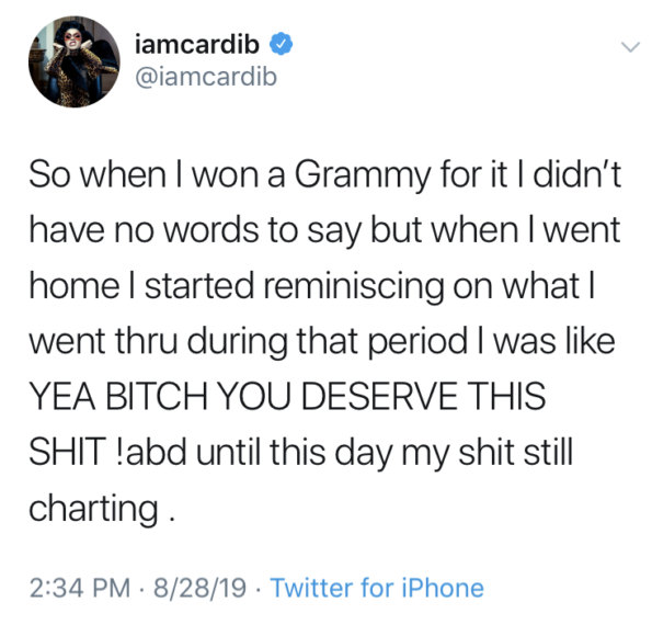 We’re so proud of you, Cardi B!
