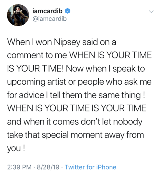Cardi B says she is living proof that everyone’s destiny manifests in its unique timing.