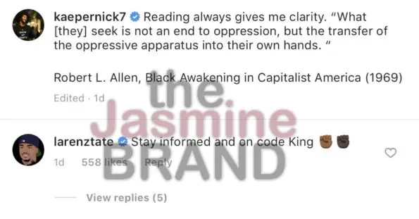 Soon after sharing, actor Larenz Tate gave his co-signing of Kaepernick’s message.