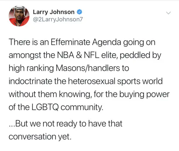 “There is an Effeminate Agenda going on amongst the NBA & NFL elite, peddled by high ranking Masons/handlers to indoctrinate the heterosexual sports world without them knowing, for the buying power of the LGBTQ community.
