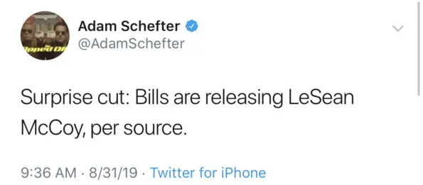 The Buffalo Bills have released star running back, LeSean McCoy, over the weekend. According to reports, general manager Brandon Beane said cutting McCoy was a tough decision but best for the team.