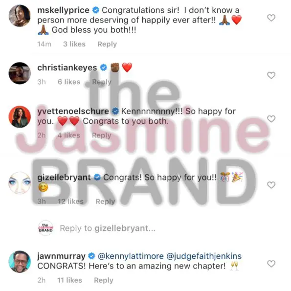 After sharing their exciting engagement news, many friends took to their comments to wish them well wishes including Kelly Price, Gizelle Bryant, and actor Christian Keyes.