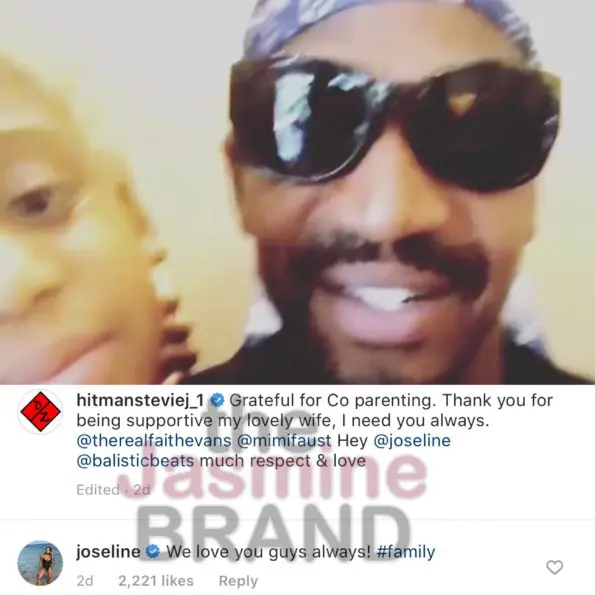 Stevie also addressed their co-parenting status, stressing that “everything’s smooth.” He also thanked his wife, Faith Evans, for her support and shouted out his babies’ mothers, LHHATL’s Mimi Faust and Joseline. The Puerto Rican Princess responded to his message: