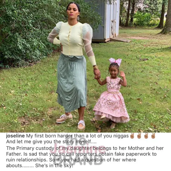 “My first born harder than a lot of you n*ggas. And let me give you the story myself. The Primary custody of my daughter belongs to her Mother and her Father. Is sad that you so call reporters obtain fake paperwork to ruin relationships. So if you had a question of her where abouts…… She’s in the sky!”
