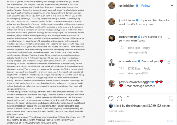 Backed by iconic singer Usher, Justin Bieber exploded into superstardom at the young age of 13 – quickly spiraling into a world of riches, lawsuits, drug abuse, and chaos. Now, at 25-years-old, he has rehabilitated himself and ready to reflect on his story with the public. In an emotional Instagram post, he explained the past couple of years to followers with this caption: