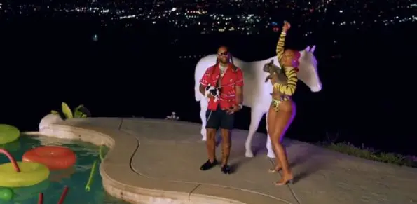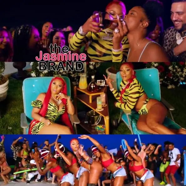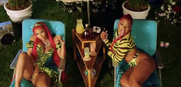 In her video, the rapper clearly is comfortable in her skin as she and Nicki wore matching neon-green tiger print thongs while mixing it up during the party.