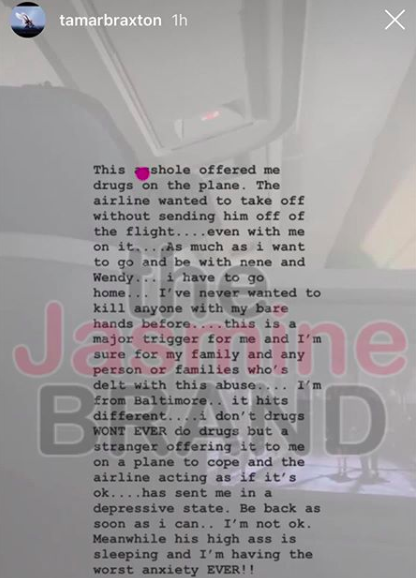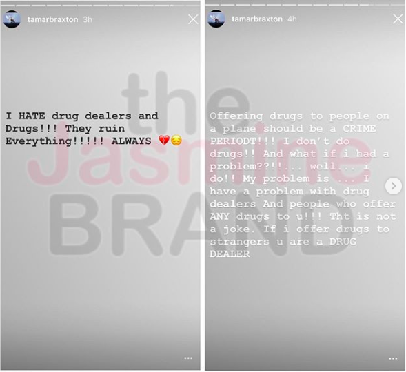 Tamar Braxton Blasts Passenger On Flight For Offering Her Drugs ‘Drug Dealers Ruin Everything!’
