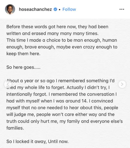 He took to Instagram to and posted a photo of himself in high school and told his story of being a victim of sexual assault. He said the incidents occurred when he was 14-years-old and were allegedly by the hands of a friend’s father.