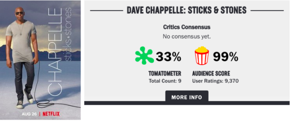 Dave Chappelle’s ‘Sticks & Stones’ Netflix Special Receives Extremely Low Reviews