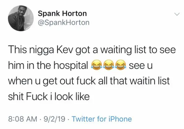 Kevin’s Plastic Cup Boyz collaborator, Spank Horton, updated fans on his condition.