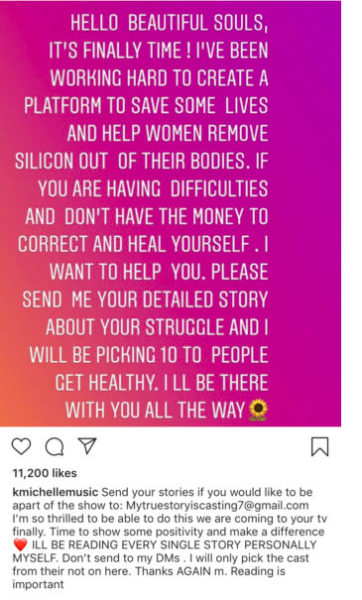 Along with My Life, K. Michelle recently started casting for her new show that will help women correct their plastic surgery operations.