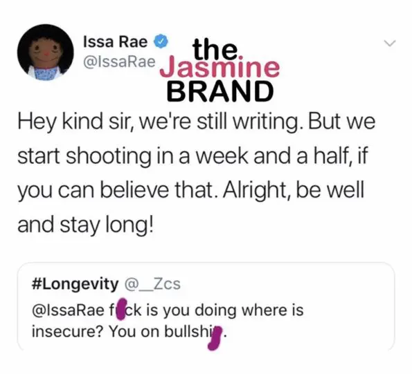 Ha! Issa took to Instagram today (9/5/19) coyly announcing that she and the “Insecure” team started filming. She flashed four fingers with the following caption: