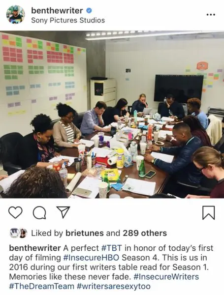 Ben Cory Jones, member of the show’s writing team, celebrated the first day of filming with a #TBT photo of a meeting from the show’s premiere season.