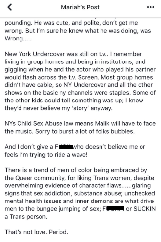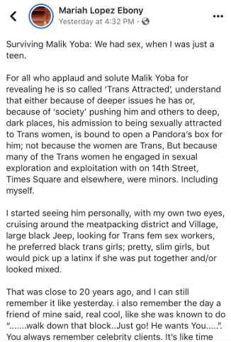 Actor Malik Yobahas responded to claims from transgender woman Mariah Lopez Ebony that he slept with trans child sex workers, including her, back in the day. See those claims below.