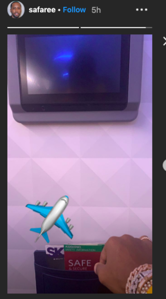 Samuels also posted a snapshot from the plane.