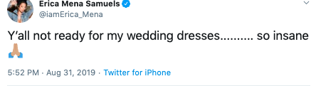 It looks like Erica Mena and Safaree Samuel’s wedding is sooner than later. On Friday (Sept 6th), Mena teased that the countdown had officially begun until she’s Mrs. Samuels.