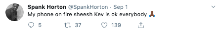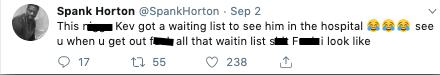 Spank Horton joked that Hart had him on a waiting list to see him in the hospital and reassured fans he was doing fine.