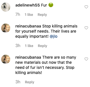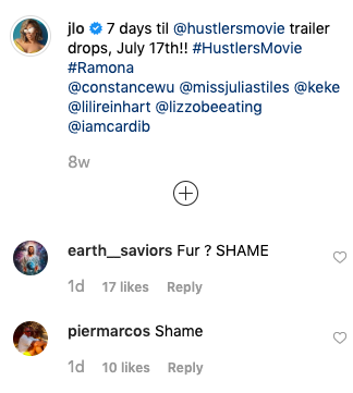 “Shame on Jennifer Lopez for wearing fur!”