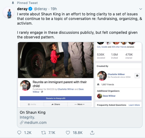 Activist Deray McKesson is the latest to come for Shaun King.