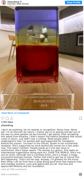 Meanwhile, he was honored at Rihanna’s Diamond Ball Thursday (Sept. 12) as well.