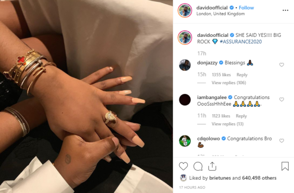 “@davidoofficial SHE SAID YES!!!! BIG ROCK #ASSURANCE2020”