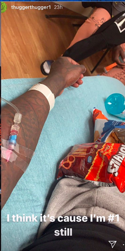 His latest post comes after he shared a photo with an IV in his arm paired with popular snacks.