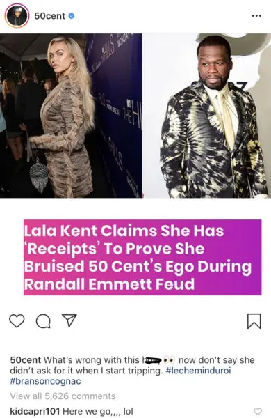 50 Cent Lashes Out At Lala Kent After She Claims She ‘Dinged’ His Ego During His Feud W/ Her & ‘Power’ EP Randall Emmett