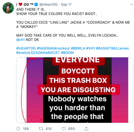 This also comes after Lozada was accused of comparing her other co-star, O.G. to an ape in her Instagram stories. She posted the message after an argument between the two aired earlier this week.