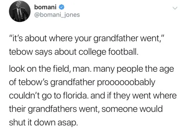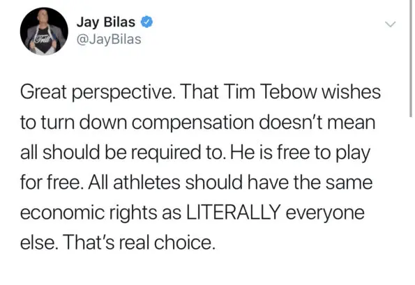 After sharing his thoughts on the bill that was approved by a 39-0 vote and will be sent to Gov. Gavin Newsom after also passing the assembly by a 73-0 vote on Monday (Sept. 9th), Bleacher Report’s Taylor Rooks responded on Instagram highlighting Tebow’s privileged experience. She writes,