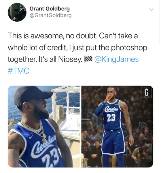 LeBron James Pays Homage To Nipsey Hussle Custom Crenshaw Lakers Jersey