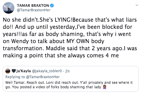 The Braxton Family Values reality star says that Loni is lying.