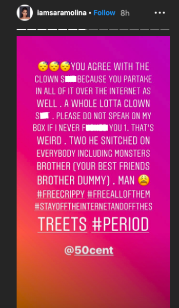 Molina, who has a daughter with Tekashi, took to Instagram Thursday (Sept. 19) to first call out 50 Cent.