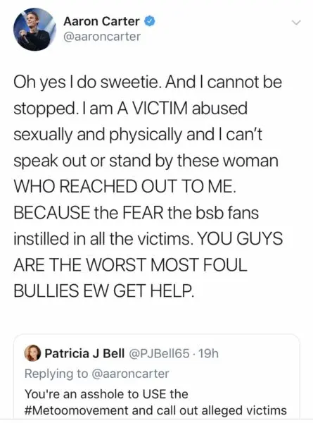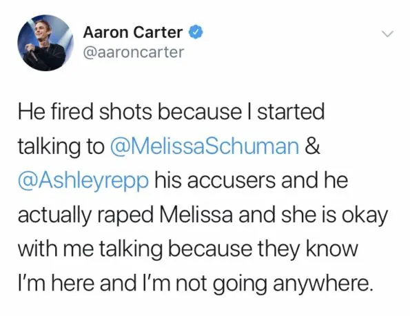 Aaron, current star of WeTV’s “Marriage Bootcamp: Family Edition,” has teamed up with Melissa in defense of two more women who have come forth accusing Nick Carter of rape and sexual assault – including a woman named Ashley. She alleges that Nick raped her at the age of 15.
