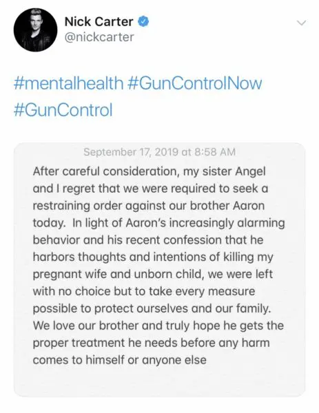 Nick Carter Of The “Backstreet Boys” Files Restraining Order Against Brother Aaron Carter, Aaron Sides With Nick’s Rape Accusers