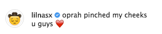 As previously reported, Nas X may have broken records throughout the year with his hit smash, but nothing compares his excitement after meeting the media mogul, Oprah Winfrey over the weekend during his guest appearance on Ellen. He writes,