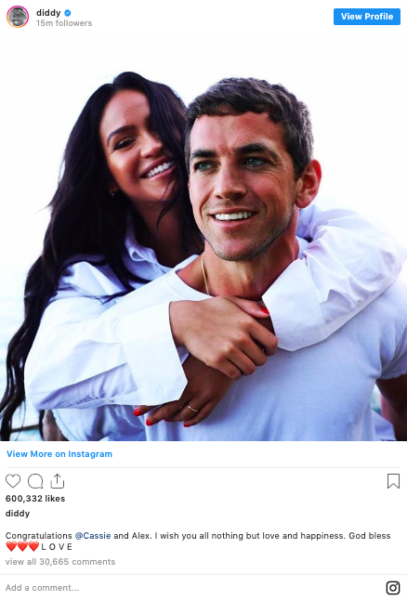 The post came just after it was announced that Cassie and her now husband, Alex Fine, secretly tied the knot.