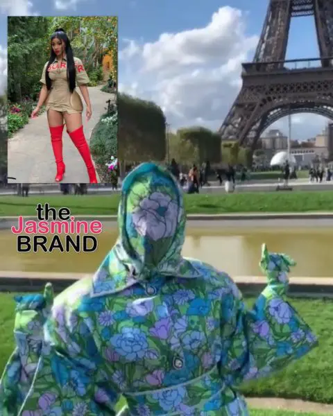 Cardi B Takes Over The Eiffel Tower In Full Head-to-Toe Designer Floral Ensemble For Paris Fashion Week [VIDEO]