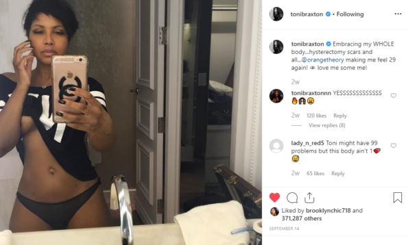 And this isn’t Toni Braxton’s first time feeling herself this month. She debuted her first bathroom selfie earlier this month, stating that she’s embracing her body – scars and all.