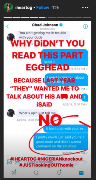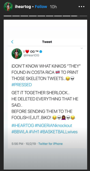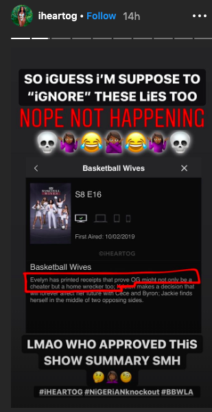 After the episode aired, OG took to social media to post the messages as well as claims that she was approached to discuss her history with Ochocinco last season.