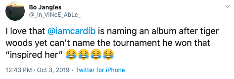 What do you think about Tiger Woods possibly being the name of Cardi’s next album? Tell us in the comments!